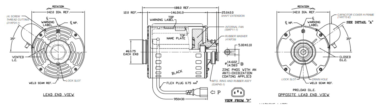 VOLTAGE: 1 Ph, 220-240 V MOTOR MODEL: Unada KHFG4704